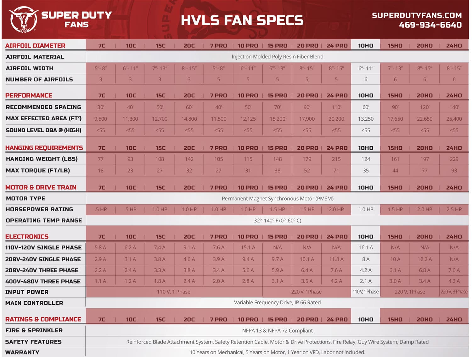 Each fan is warranted for 10 years on the mechanical components, 5 years on the motor, and 1 year on the VFD. Labor is not warranted.