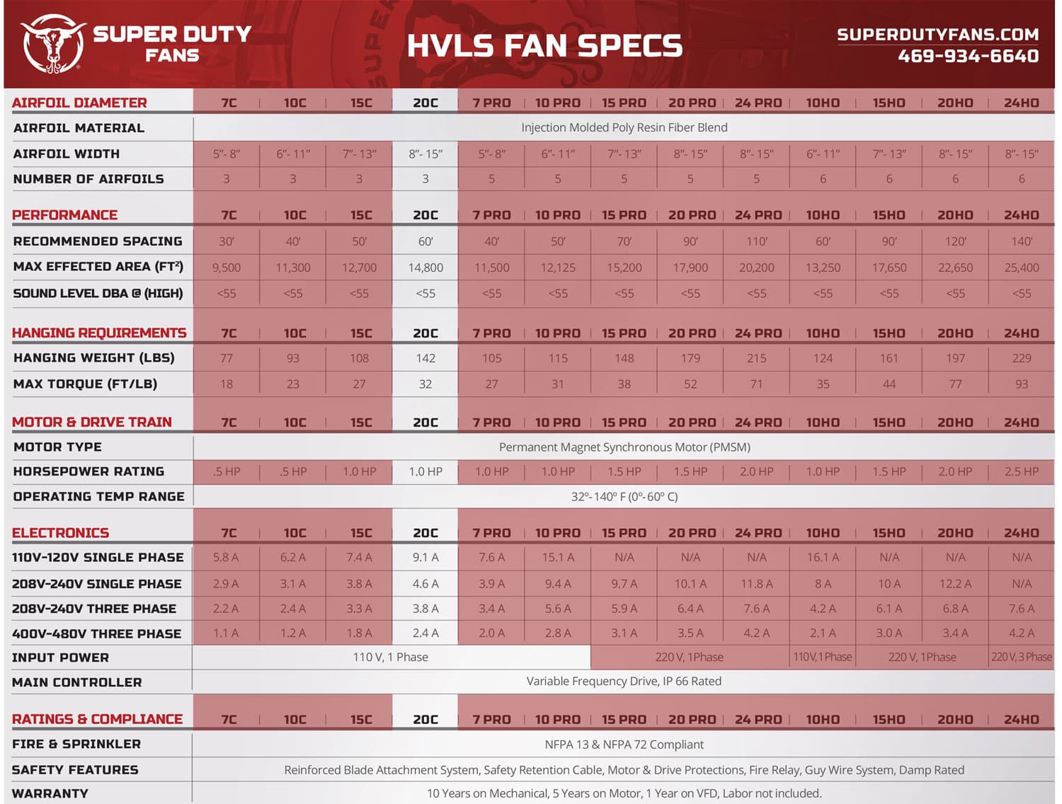Each fan is warranted for 10 years on the mechanical components, 5 years on the motor, and 1 year on the VFD. Labor is not warranted.