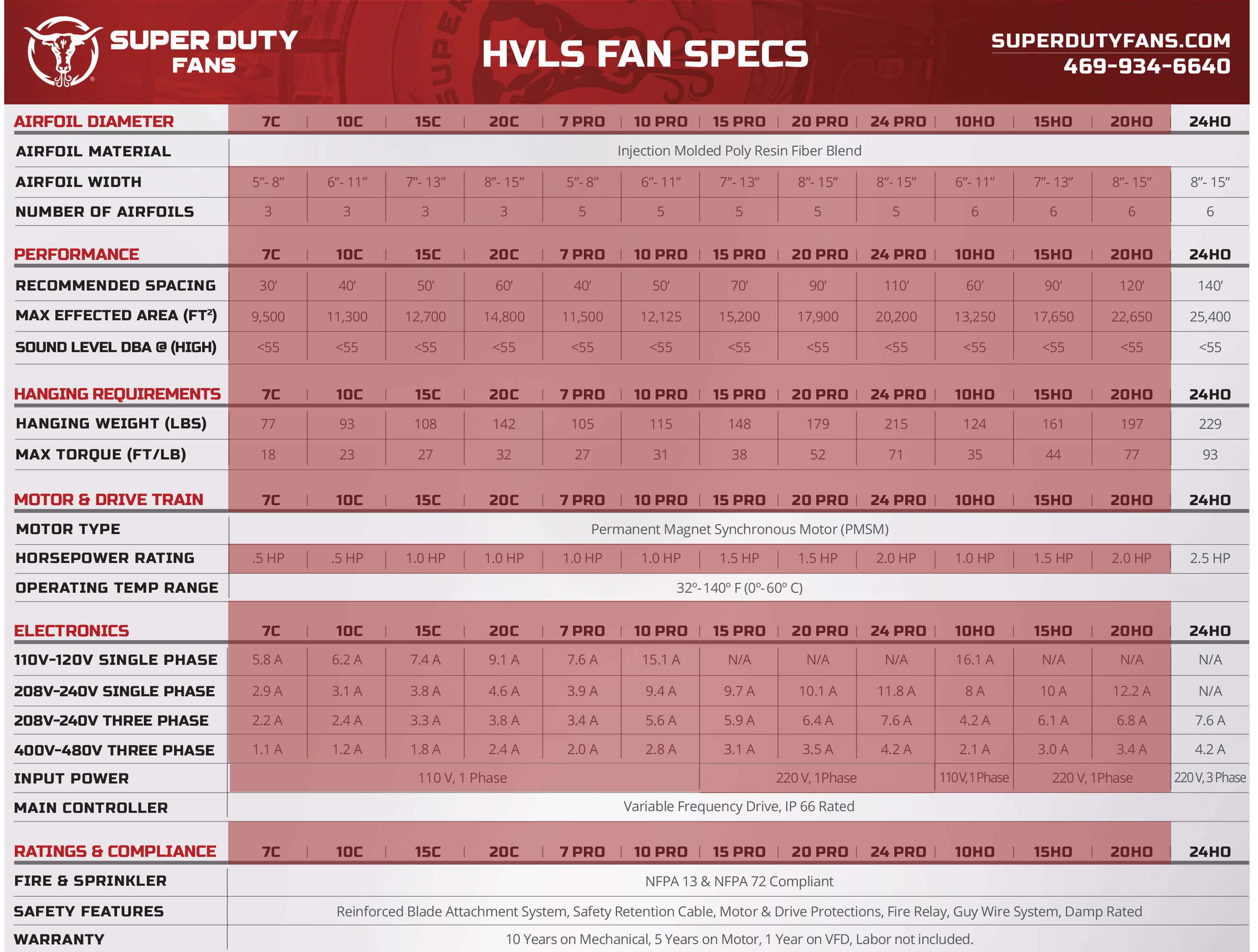 Each fan is warranted for 10 years on the mechanical components, 5 years on the motor, and 1 year on the VFD. Labor is not warranted.