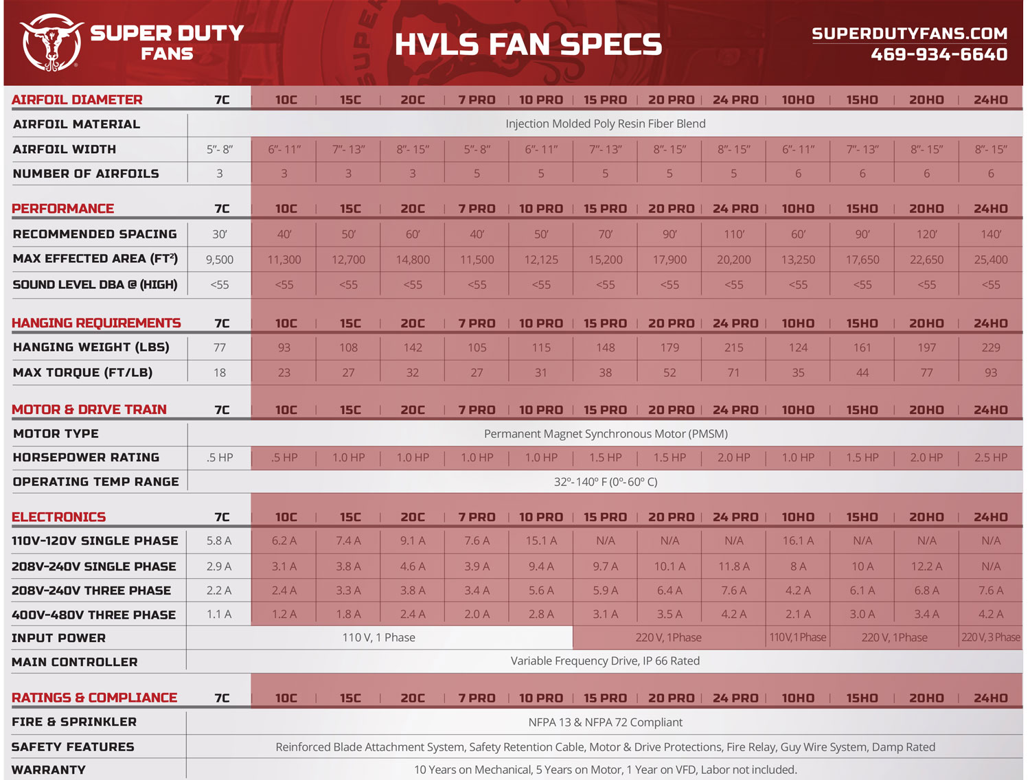 Each fan is warranted for 10 years on the mechanical components, 5 years on the motor, and 1 year on the VFD. Labor is not warranted.